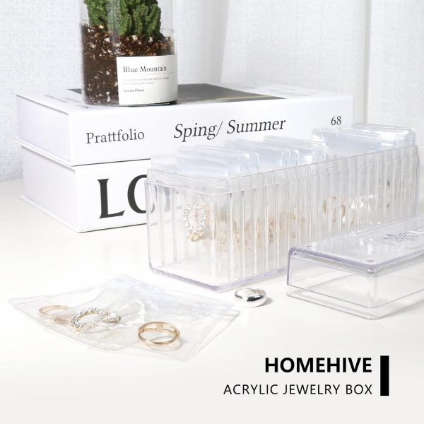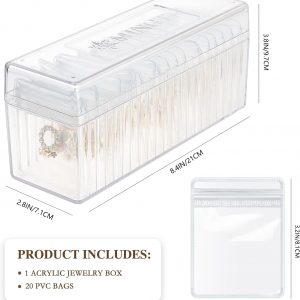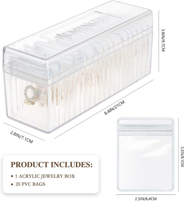 Acrylic Jewelry Box Organizer, Clear Jewelry Organizer Holder with 20 Portable Anti Tarnish Jewelry bags, Travel Jewelry Case for Earrings/Rings/Necklaces/Bracelet Gift for Women Girls