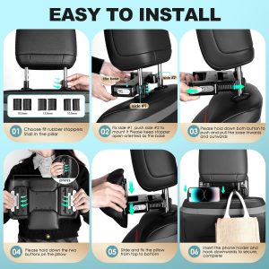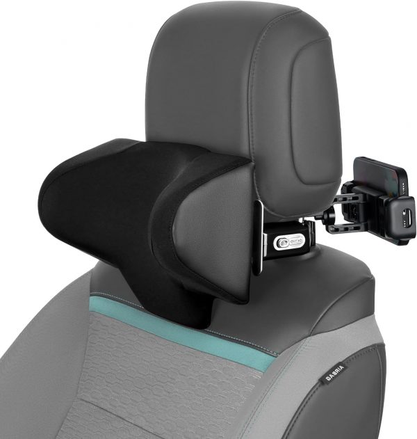 The Neck pillow for car come with a tablet/phone holder and hook for purses/bags/chlothes.