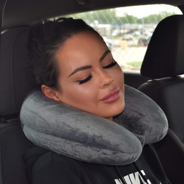Adult Neck Pillow, Compact, Perfect for Plane or Car Travel, Charcoal
