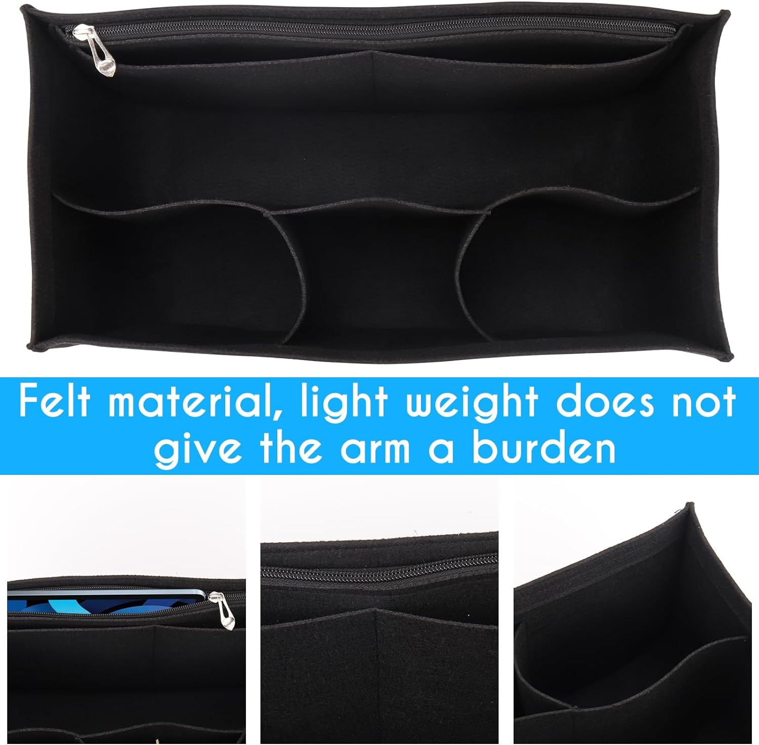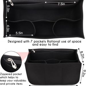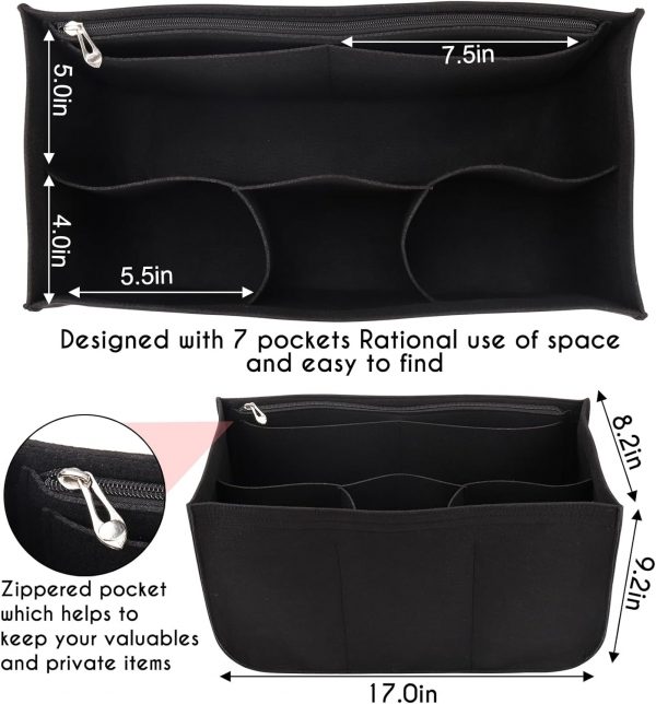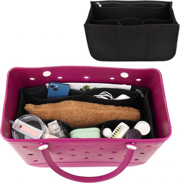 AIERSA Rubber Beach Bag Organizer Liner Compatible with Original X Large Bogg Bag/Simply Southern Tote, Felt Insert Divider Pouch Zipper for Bags Accessories, 7 Pocekets -Black