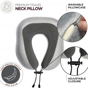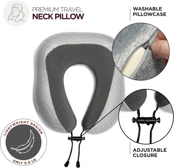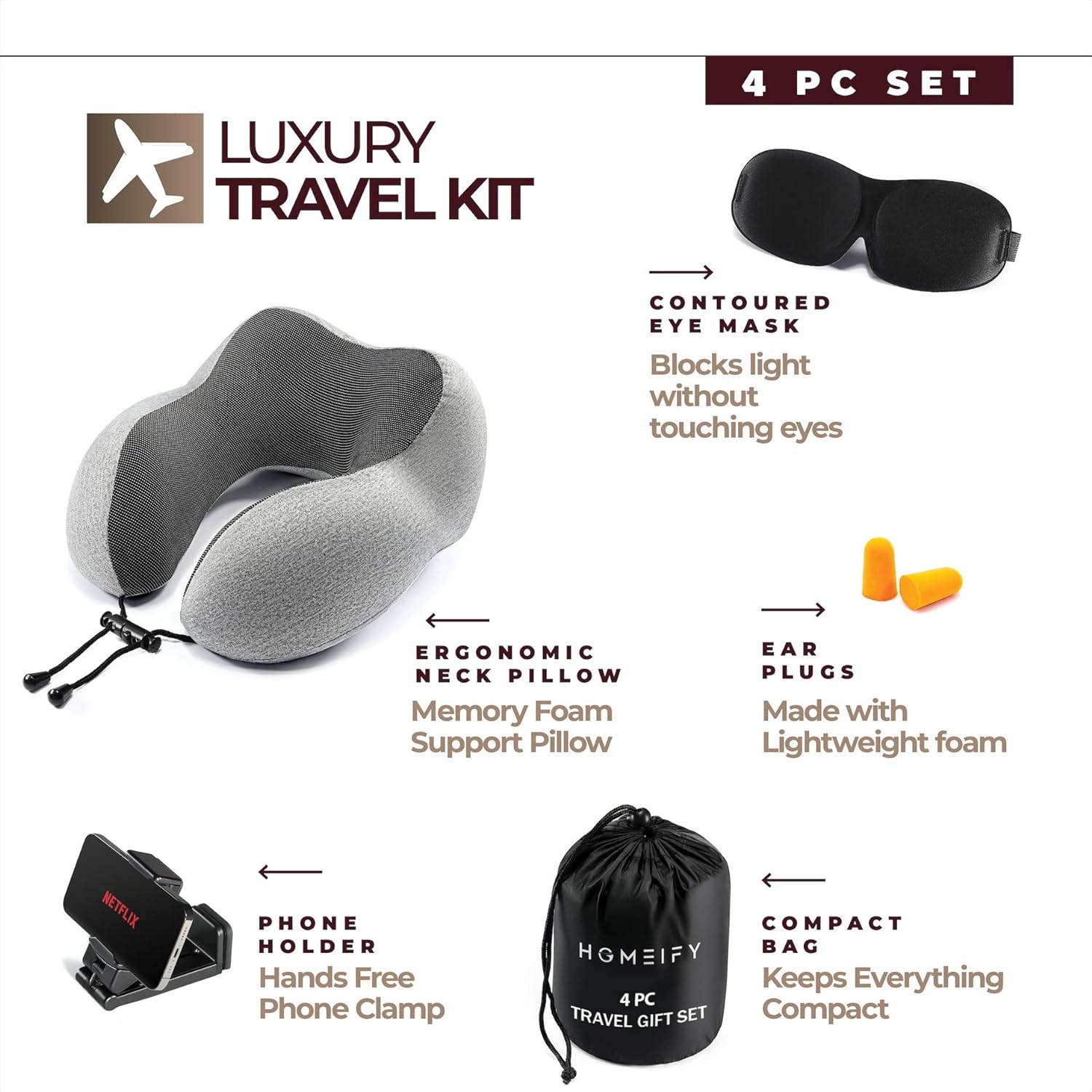 Airplane Neck Pillow Includes Travel Pillow + Airplane Phone Holder Mount + Eye Masks + Earplugs for Travel, 100% Pure Memory Foam Travel Pillow, 5 Pc Travel Kit,