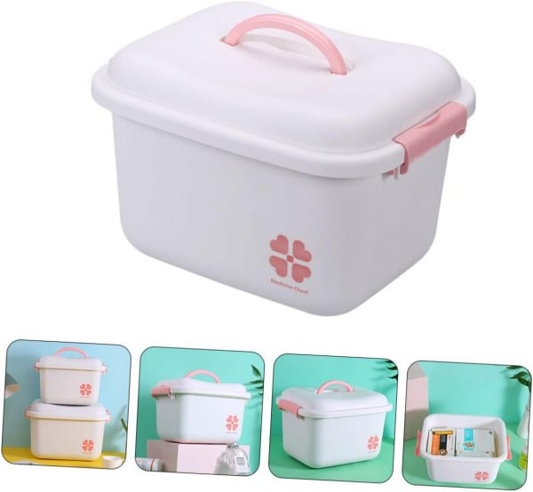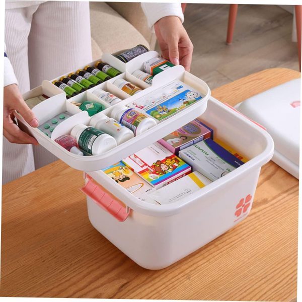 Alipis 1pc Plastic Medicine Box Medicine Storage Cabinet Portable Storage Box Family Medicine Box Plastic Organizer Box Portable First Aid Kit Portable Medicine Case Emergency Case White
