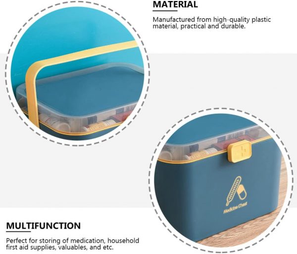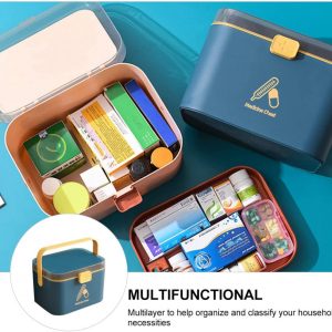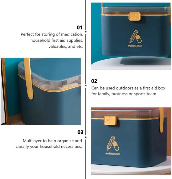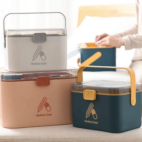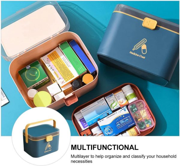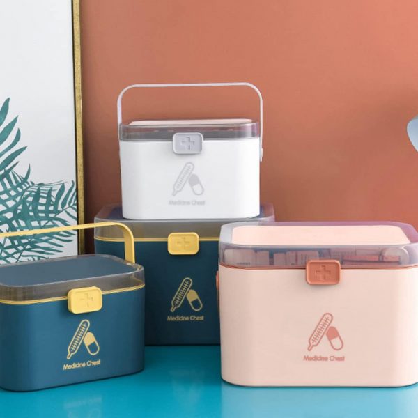 first aid storage box organizer This box can be used to classify medicine very well.Multi- layer Pill Box Made of Plastic material, very safe and durable.first aid box with Haandle An medicine box for office and house.home first aid box The item is a medicine storage box, which is very lightweight and easy to carry