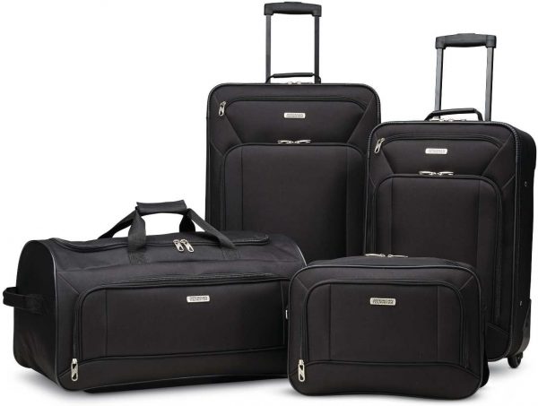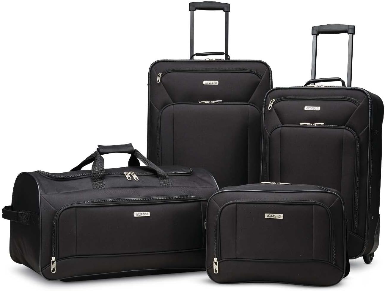 American Tourister Fieldbrook XLT Softside Upright Luggage, Black, 4-Piece Set (BB/WD/21/25 UP)