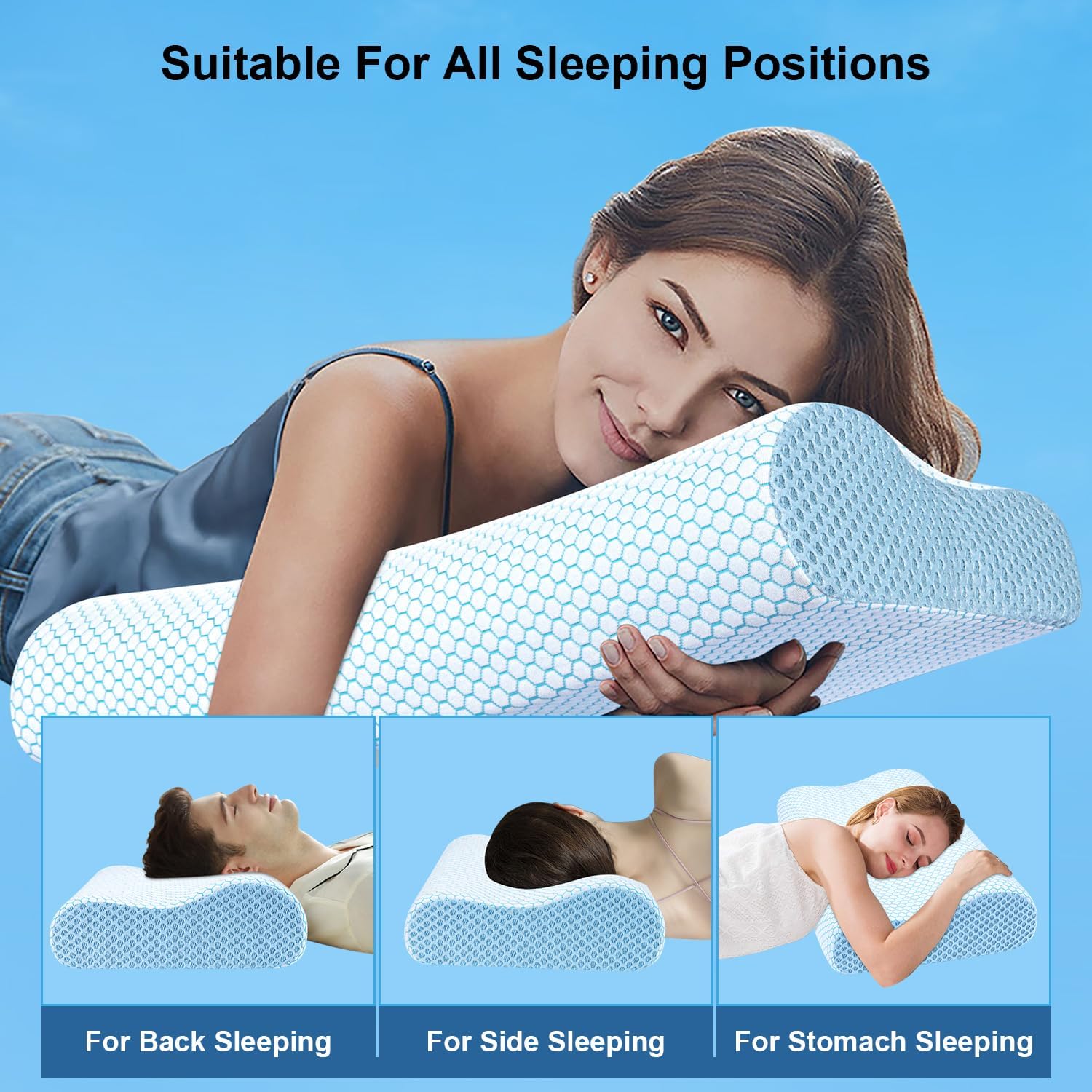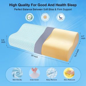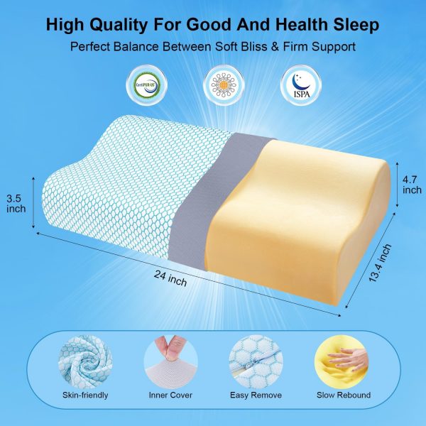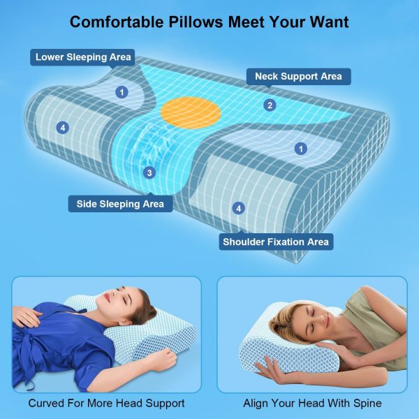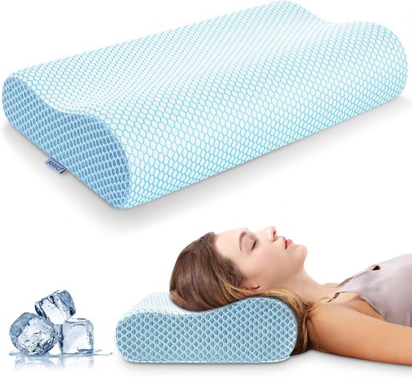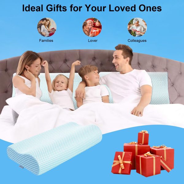 Anvo Memory Foam Pillow, Neck Contour Cervical Orthopedic Pillow for Sleeping Side Back Stomach Sleeper, Ergonomic Bed Pillow for Neck Pain – Blue, Soft
