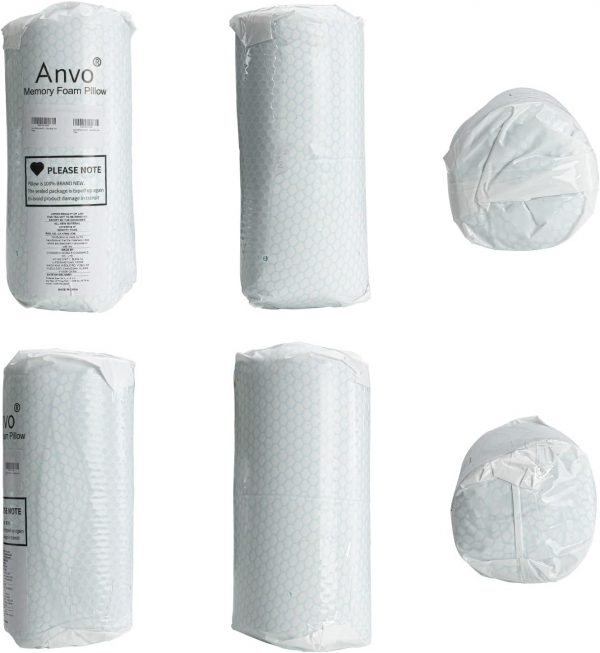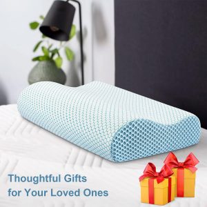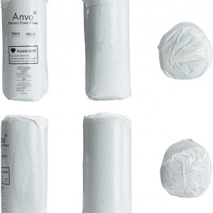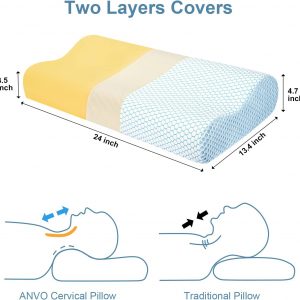 Anvo Memory Foam Pillow, Neck Contour Cervical Orthopedic Pillow for Sleeping Side Back Stomach Sleeper, Ergonomic Bed Pillow for Neck Pain – Blue White, Firm