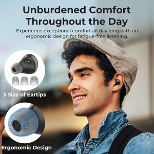 Weatherproof and Portable: These headphones boast IPX5 waterproof construction, alleviating concerns about damage from wind and rain. Crafted with soft silicone, they include 6 sets of large and small earplugs to accommodate various ear canal sizes. They ensure easy portability wherever you go.