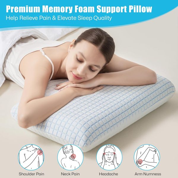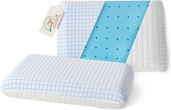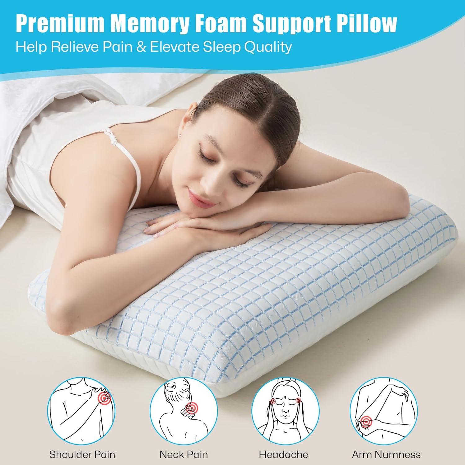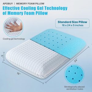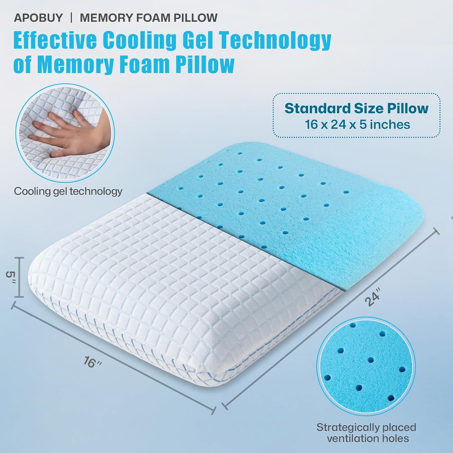 APOBUY Standard Size Memory Foam Pillows-Pillow Cover with Firm Support Cooling Gel for Adult Neck Pain Relief, Cervical Radiculopathy – Best Neck&Cervical Pillow for Side Back Stomach Sleeper