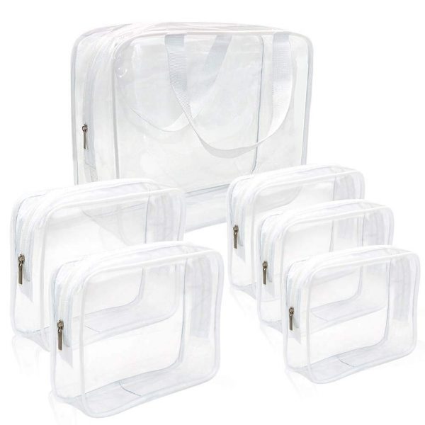 Cut down on clutter with these small-to-large clear zipper bags, perfect for makeup, toiletries, baby products, shaving, electronics, fragrance, sunglasses, lipstick, facial cleansers, passports, and more.