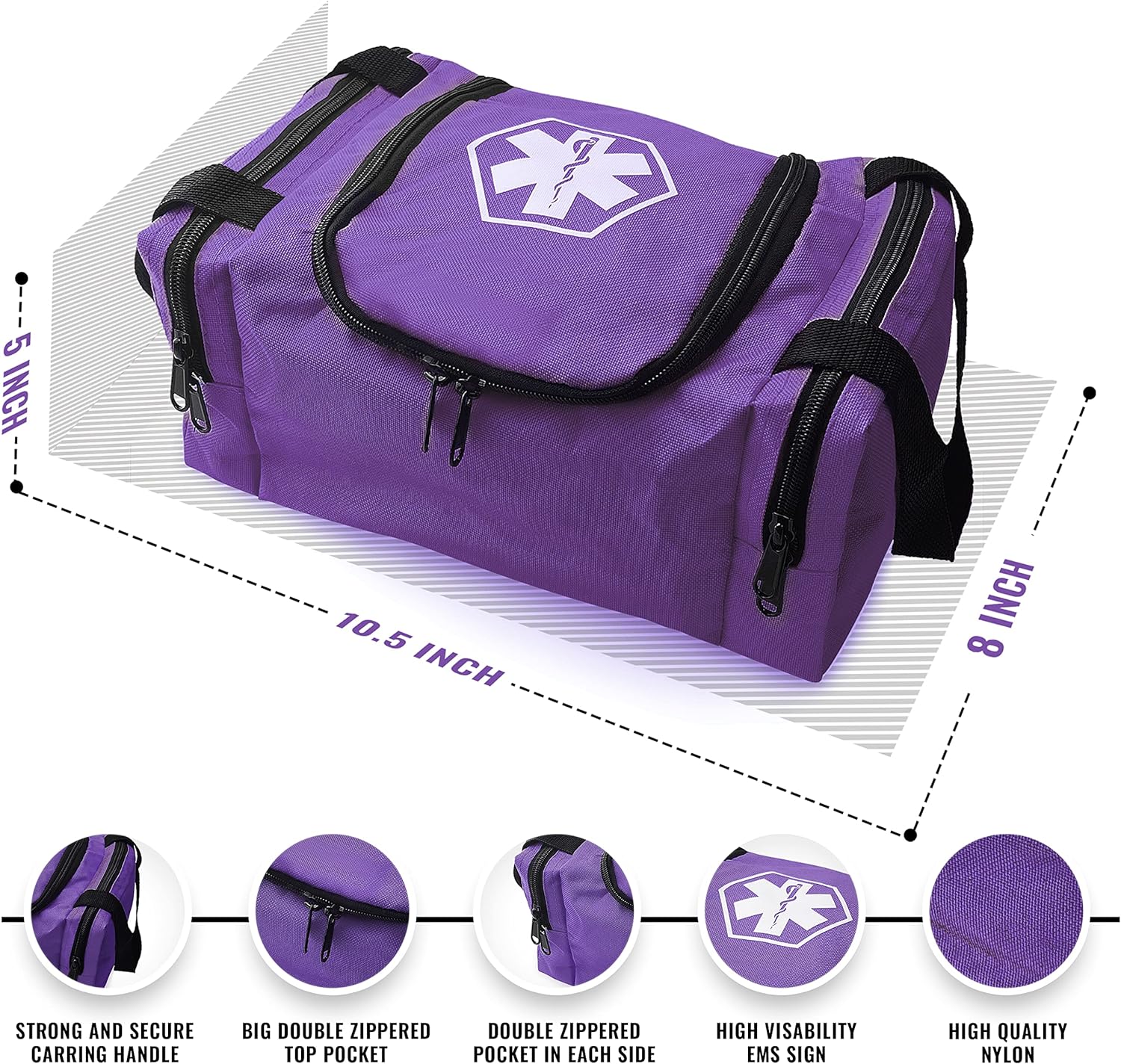 ASA TECHMED First Aid Responder EMS Emergency Medical Trauma Bag EMT, Fire Fighter, Police Officer, Paramedics, Nurse, Purple