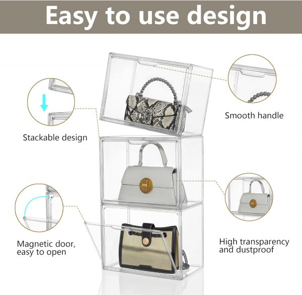 【MAGNETIC DOOR & Humanized design 】Magnetic door design: one hand can easily open and close .The Front door design: You put the handbag in the bottom box, you don’t have to take the top box off, open the front door and easily take it out and put it in.