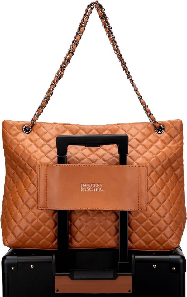 Stand out of the crowd with the Badgley Mischka Diana Weekender a luxe weekender bag featuring a diamond-quilted design and a lot of pockets for carrying everything you need for a busy day or weekend.
