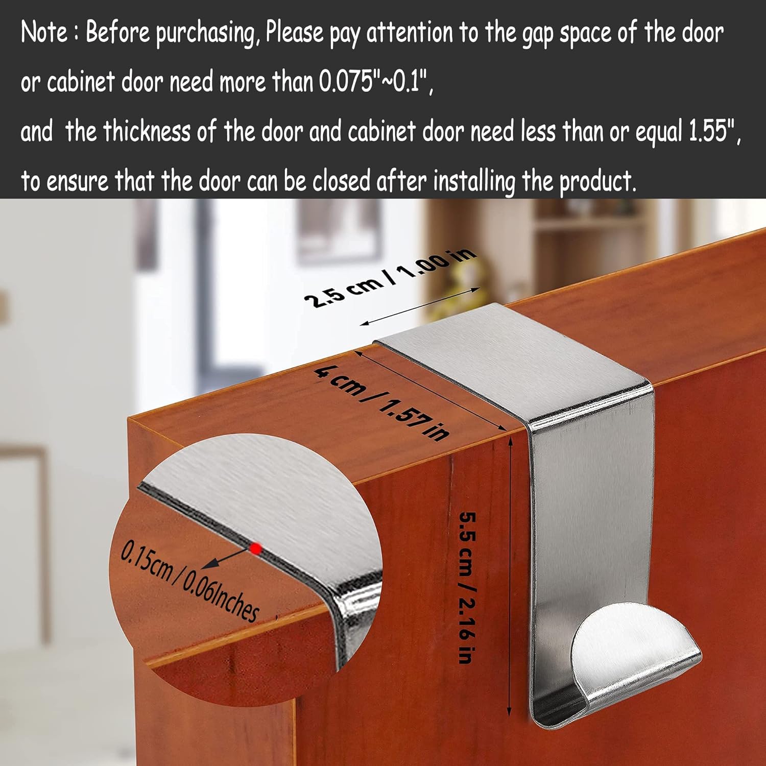 Over-the-door hooks fit residential No more than (1.5″) thick doors.Suitable for most doors.