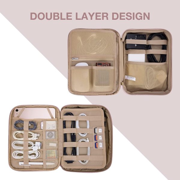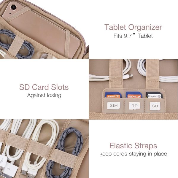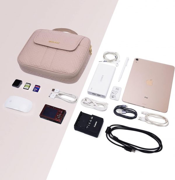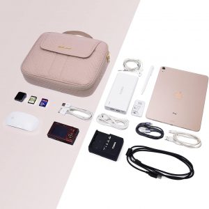 A comfortably big enough travel bag for holding most of your electronics with ease, like 9.7’’ iPad, chargers, hard drives, batteries, USB cords, power bank, SD cards, power adapters and other electronic accessories.