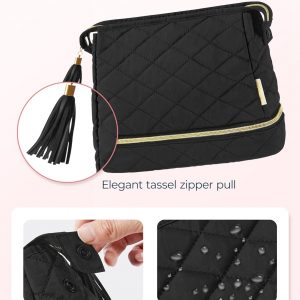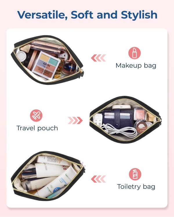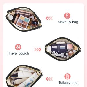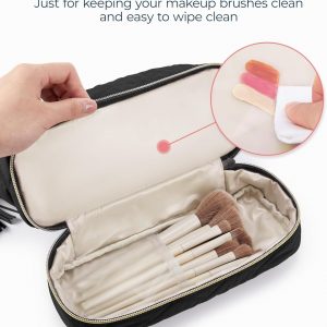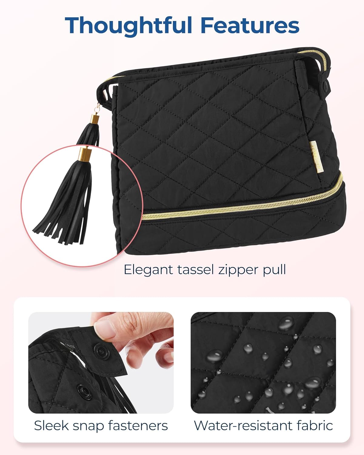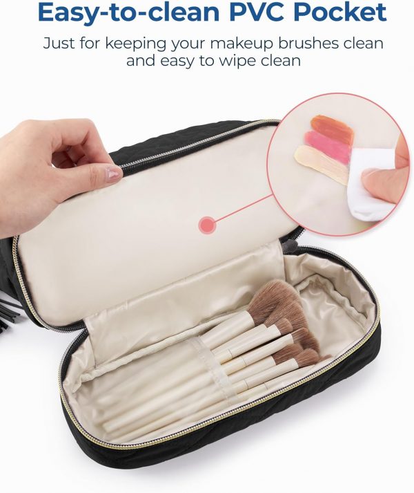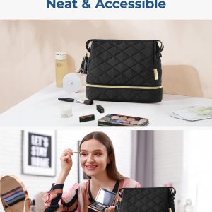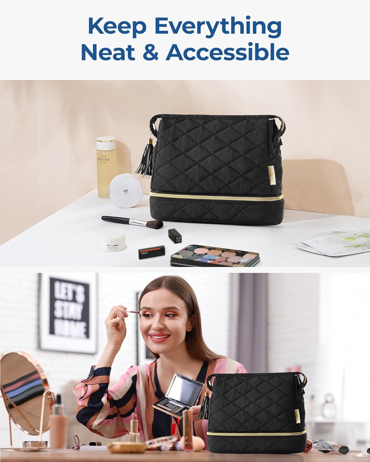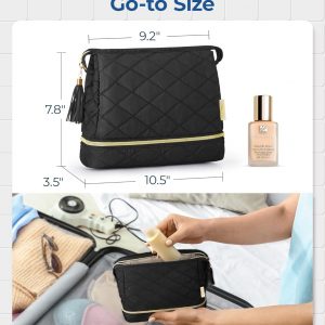 BAGSMART Makeup Bag Travel Cosmetic Bag,Puffy Make Up Bags for Women Double Layer Makeup Organizer Case,Wide-open Puffer Pouch for Purse Storage Travel Essentials Toiletries Accessories Brushes, Black