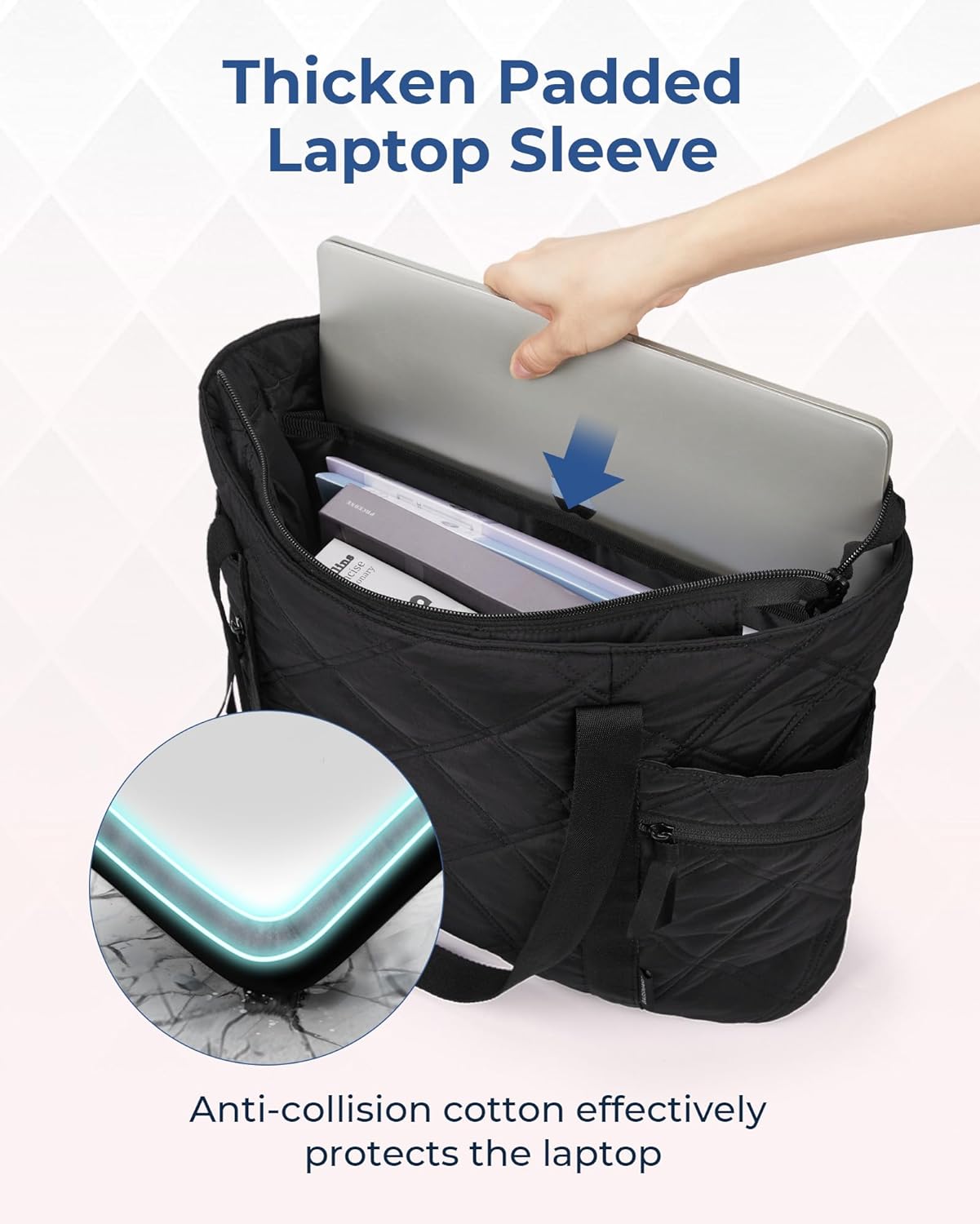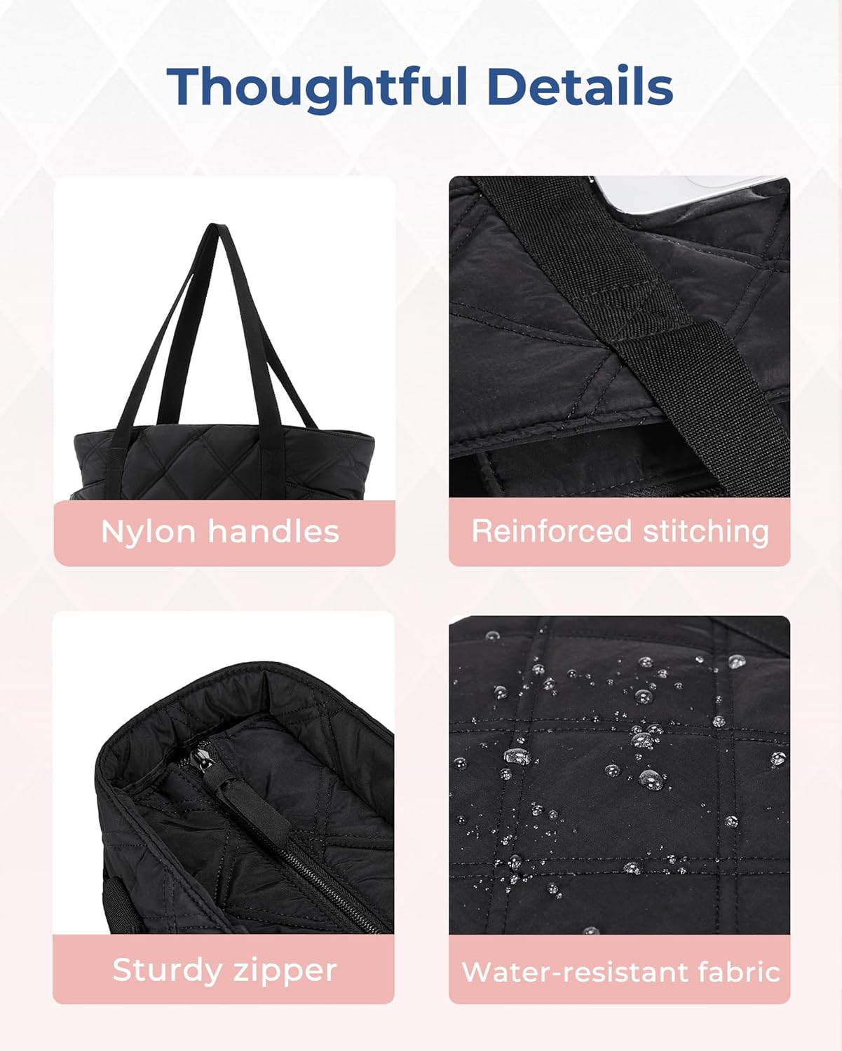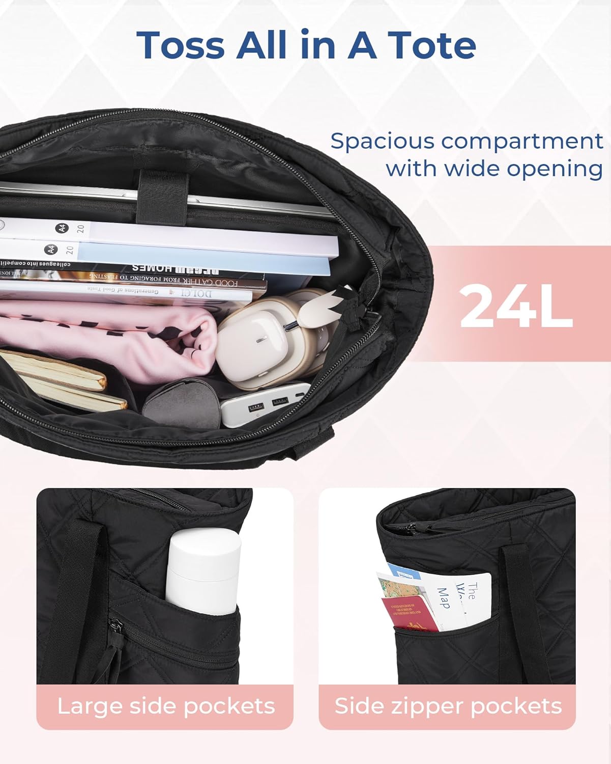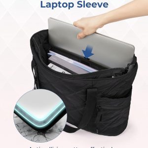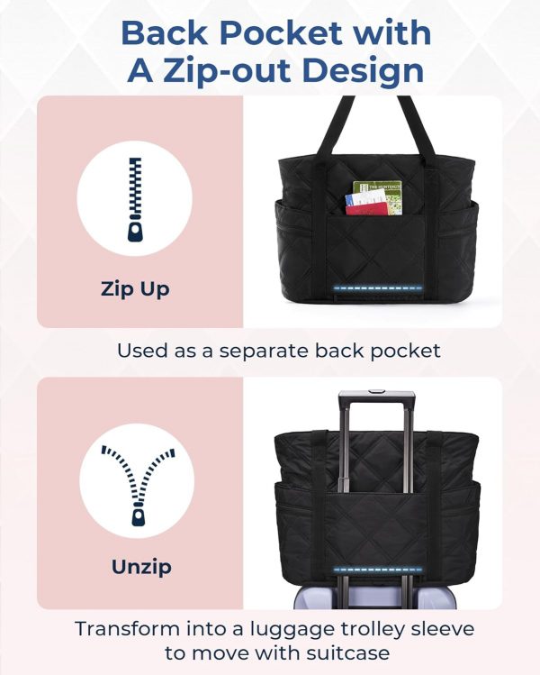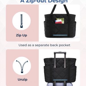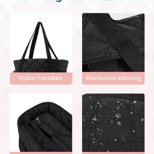 BAGSMART Tote Bag for Women, Travel Essentials Large Tote Bag with Zipper, Quilted Puffer Bag Carry On Bag for Travel Work