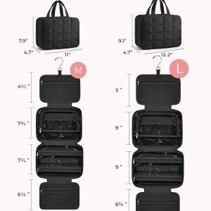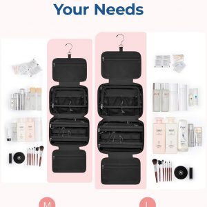 𝐋𝐚𝐫𝐠𝐞 𝐂𝐚𝐩𝐚𝐜𝐢𝐭𝐲: Medium size – 11”L x 4.7”W x 7.9”H(closed). Large size – 12.2”L x 4.7”W x 9.1”H(closed). The travel toiletry bag can perfectly organize your necessary travel toiletries and makeup storage