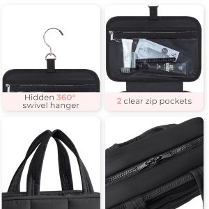 𝐏𝐮𝐟𝐟𝐲 𝐌𝐚𝐭𝐞𝐫𝐢𝐚𝐥𝐬: Hanging Toiletry Bag is made of puffy fabric and weighs only 1.1lbs-1.5 lbs. Super soft, lightweight nylon fabric provides all-day carry comfort