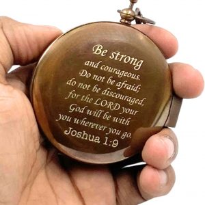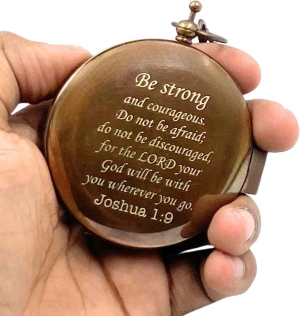 Inspirational Engraving: Features the motivational bible verse Joshua 1:9, serving as a daily reminder of strength and guidance.