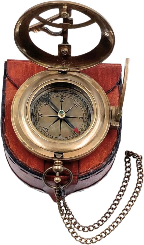 Travel-Ready Design: Comes with a sturdy 10-inch chain and a protective leather case, ensuring your compass stays safe during adventures.