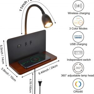 10W Wireless Charging and USB Charging: The upgraded dimmable wall lamp has 10W fast wireless charging and USB charging functions. (Compatible with every QI device), which means you can charge two devices and use the lamp to work at the same time, You can charge your mobile phone while working, studying, reading, crafting, and sleeping.