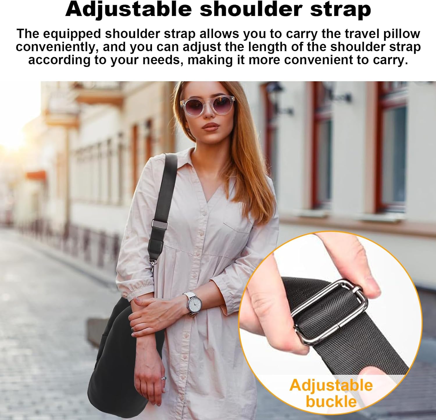【PORTABLE】The travel pillow comes with a shoulder strap, allowing you to carry it easily. It is lightweight and small in size, making it convenient to carry in your bag or backpack.