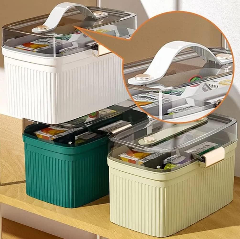 Secure Lock for Safe & Secure Medicine Storage: Medium White First Aid Medicine Storage Box with Lock is perfect for securely and safely storing medicines and medical supplies, keeping contents safe from unauthorized access.