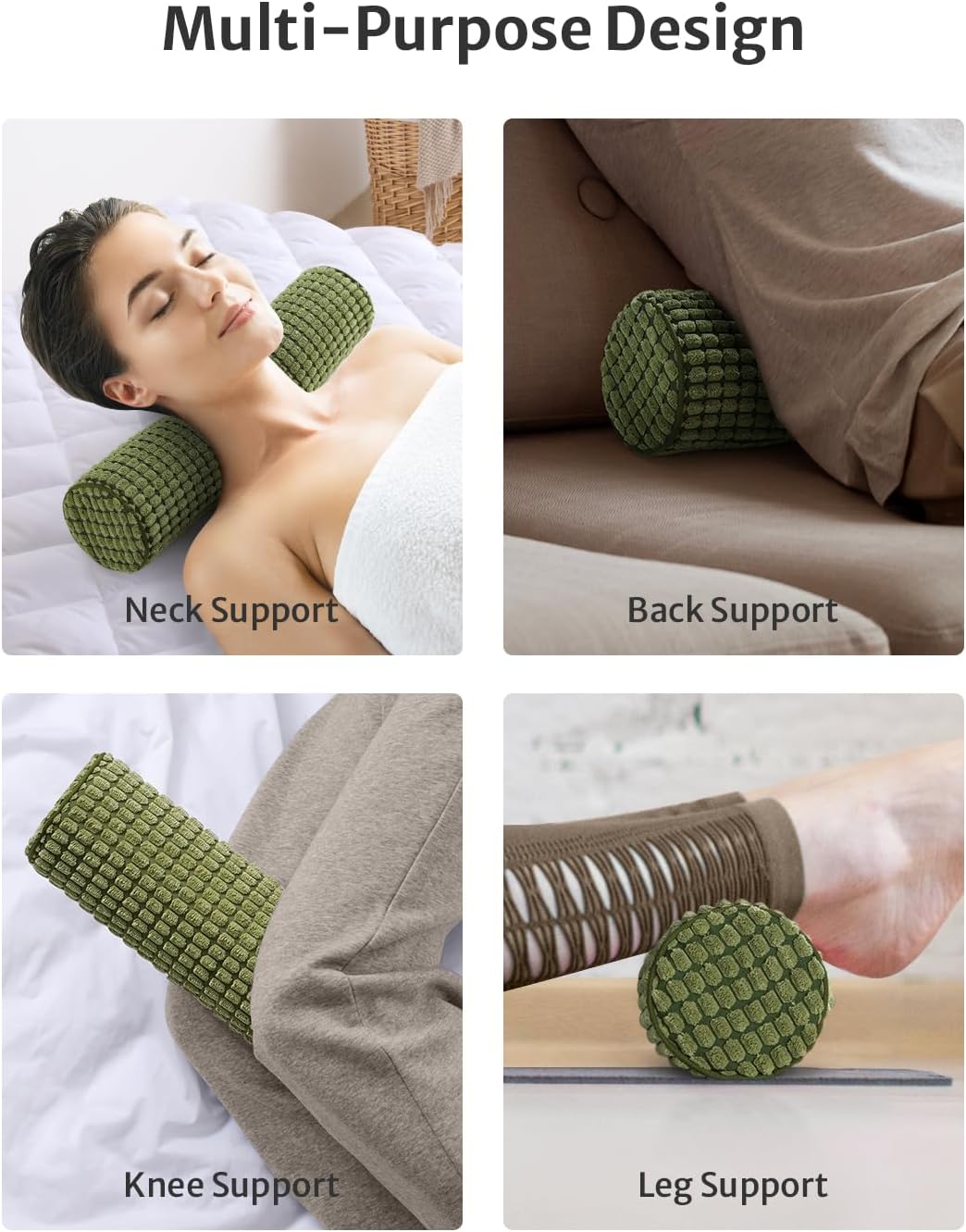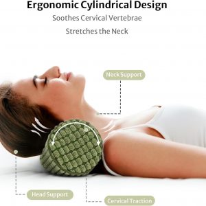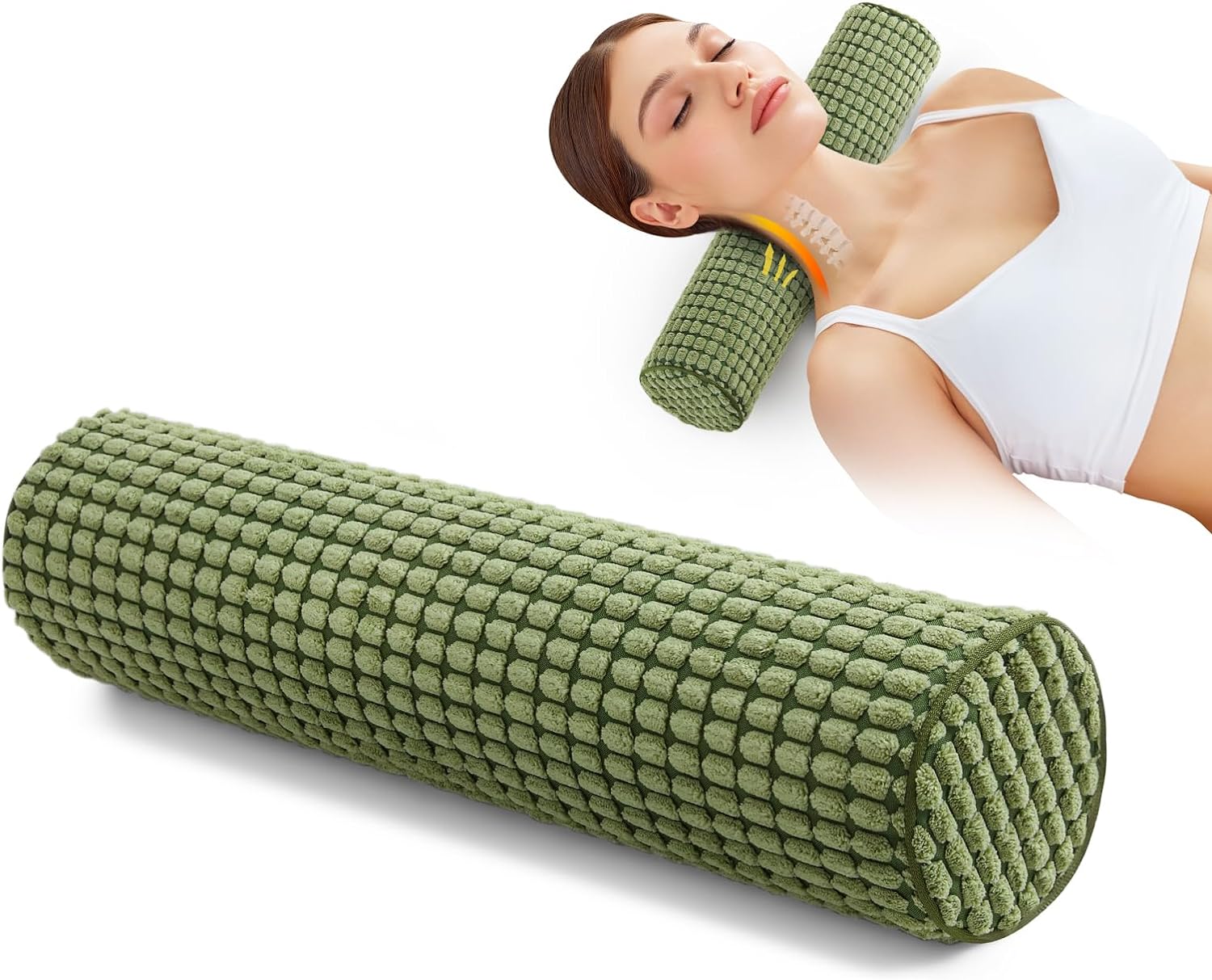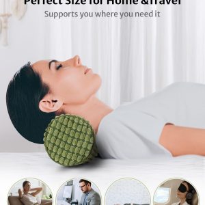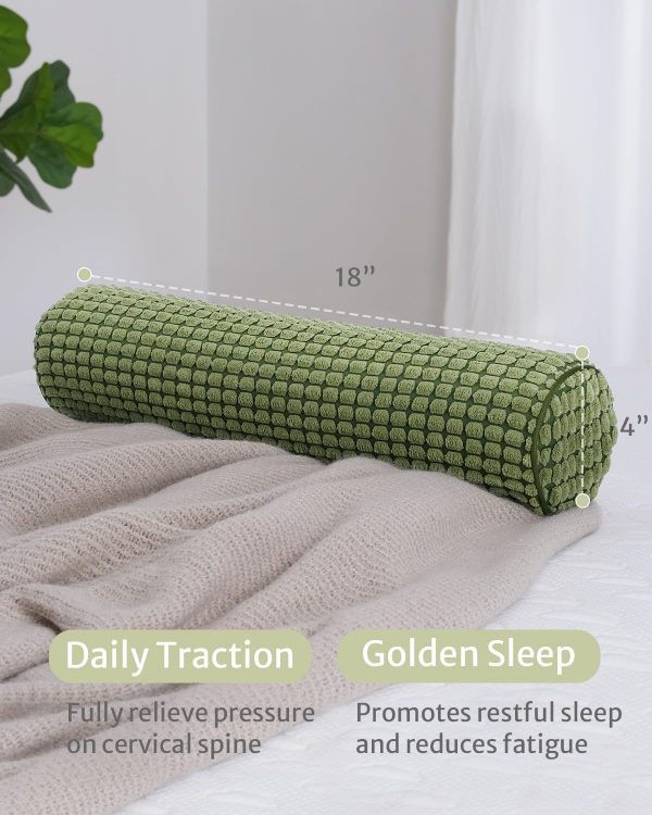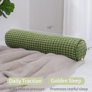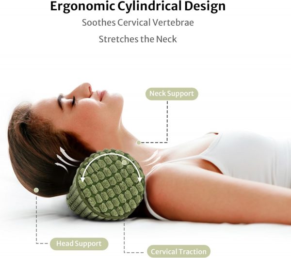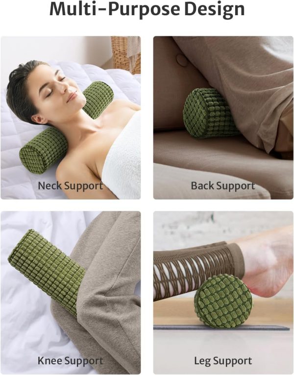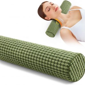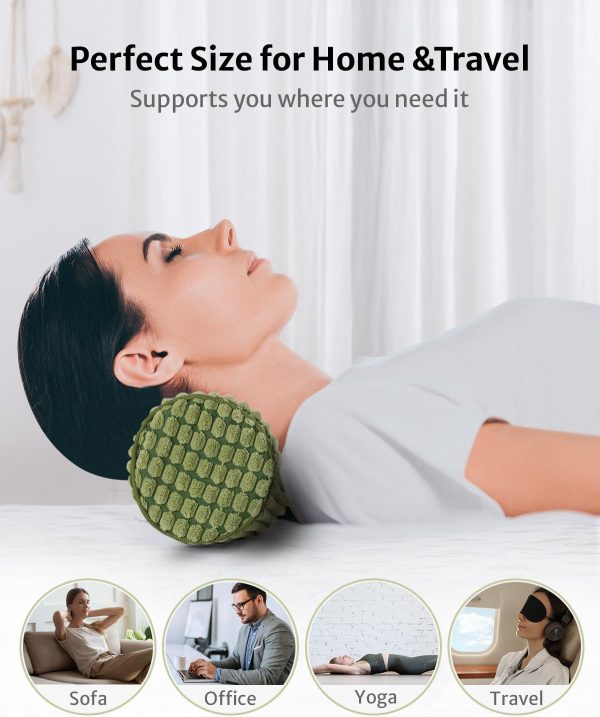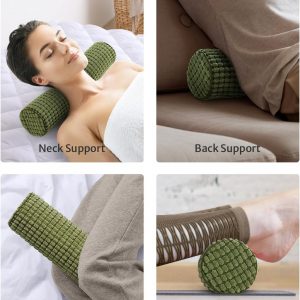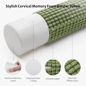 Blissful Diary Neck Pillow for Sleeping, Memory Foam Plush Dot Washable Cervical Neck Pillow for Neck Pain Relief, Multi-functional Home Office Travel Yoga Round Cylinder Bolster Pillow, Stylish Green