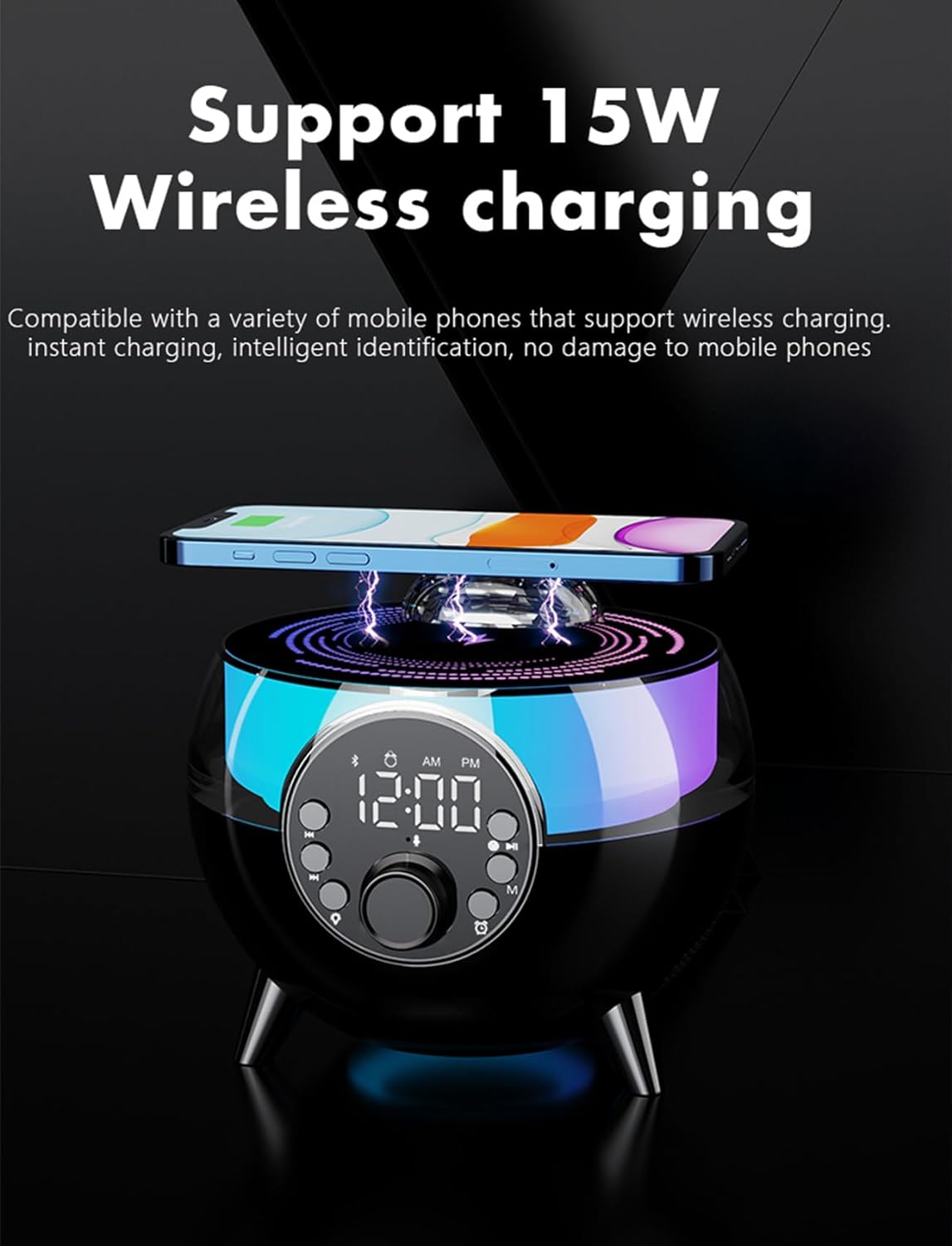 🎵[15W Wireless Charging, Sleep with Confidence] – led bluetooth speaker’s 15W wireless fast charger needs to be connected to a power source to use it, enjoy a convenient wireless charging experience. No more tangled cables, making charging simple and efficient.