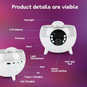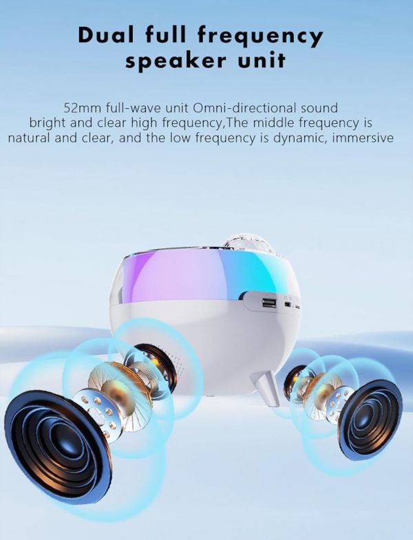 🎵[Hi-Re Music Player, Meet the Divine Comedy] – projection night light has the latest 5.1 bluetooth wireless speaker function, through the music combined with the effect of the light to give you a better music experience, while supporting U disk, TF card playback / AUX audio input