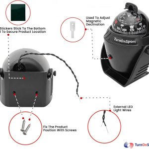 INCANDESCENT LIGHT DISPLAY: Two power cords on this boat’s marine compass can be linked to the power supply 12V dashboard of a boat or sea ship. Compass for boat comes up with incandescent light to fix lighting issues. Now, you can clearly see the dial whether you’re driving or sailing during the night