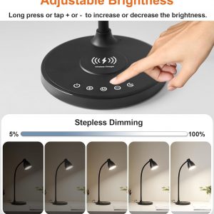 💡【5 Color Modes & Stepless Dimming】The reading lamp is controlled by sensitive touch buttons, 5 color temperature modes (2700K – 6000K). Let you choose warm light, excellent light, or daylight to meet all your learning, work, and life scenario requirements. You also get dimming options within each color choice. Long press to adjust the lamp’s brightness (from 5%-100%), or short click to adjust the color and brightness.