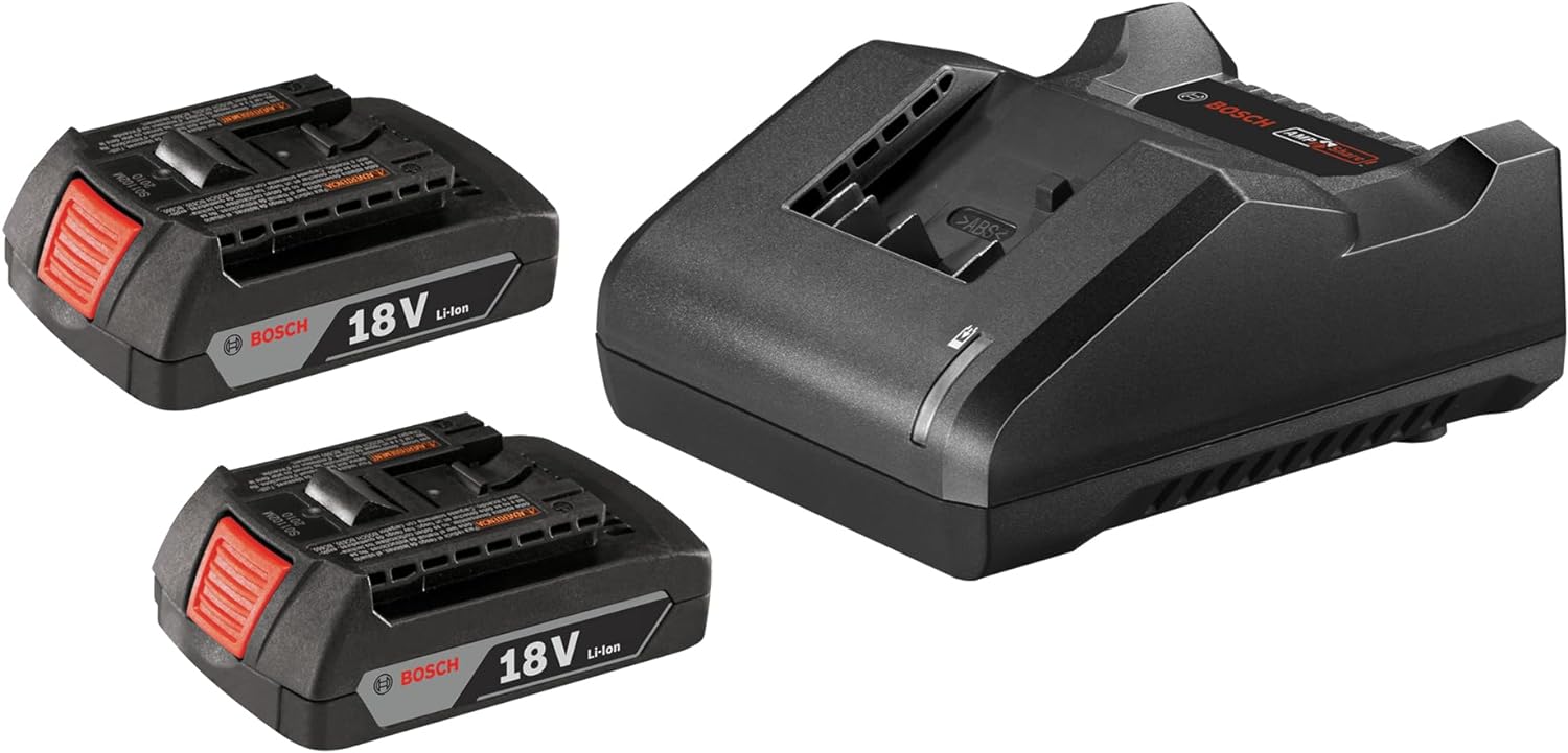 BOSCH GXS18V-23B21 18V Starter Kit with (2) 18V 1.5 Ah Slimpack Batteries and (1) 18V Standard Battery Charger