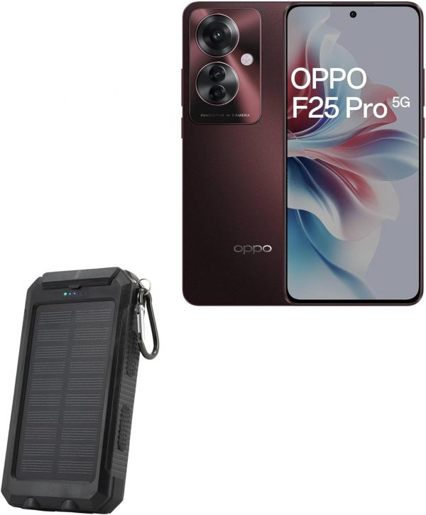 BoxWave Power Bank Compatible with Oppo F25 Pro – Solar Rejuva PowerPack (10000mAh), Solar Powered Backup Power Bank 10000mAh – Jet Black