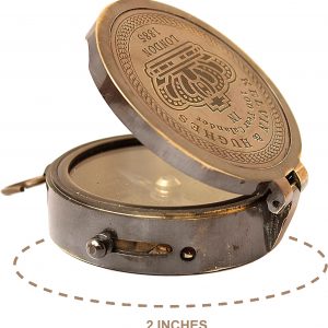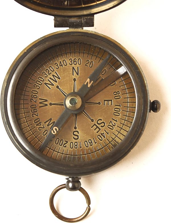 Push Button Mechanism for opening of Magnetic Compass Portable Design Convenient to Carry This antique finish compass looks attractive and easily fits in a pocket or on a shelf for display.