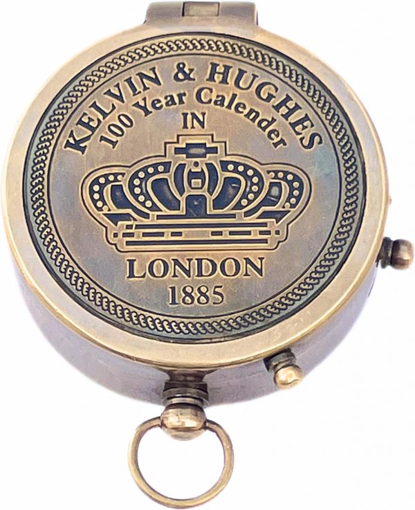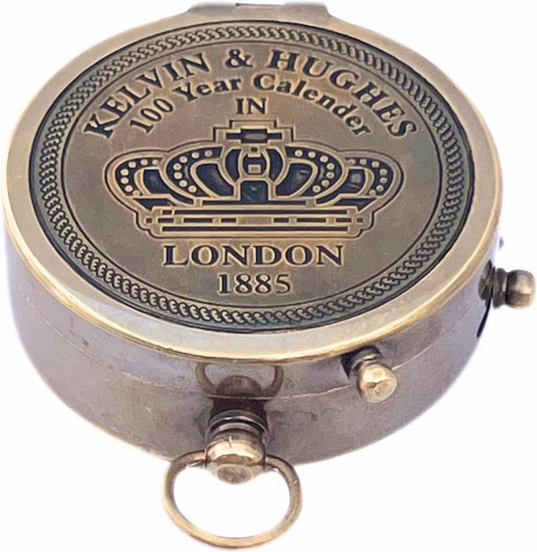 A Beautiful Navigational Kelvin Hughes 100 Year Calendar Compass Measures 2 Inches Approx Diameter And Looks Like When We Open Its Cover,It Will Give Your Place An Royal Antique LookBrass made compass comes with the marking Kelvin & HughesFamous company which produced navigational instruments