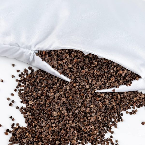 Regular triangle lateral view and bone-like design,conform to ergonomics,support your neck and head evenly and comfortably.The filling-adjustable dsign,add or remove buckwheat hulls to fit the sleeping hight,which helps the sleeper to find out the comfier curve that fits the neck well and improve sleep quality in some way. Premium tartary buckwheat hulls,clean and plump,warm in winter and cool in summer,offer the firm and comfy supporting to the neck curve.That can help to relieve neck pain and improve sleep.