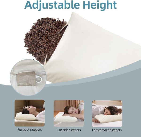 AN EXTRA 100% ORGANIC COTTON PILLOWCASE: This buckwheat pillow features a soft, breathable organic cotton pillowcase that is unbleached and gentle on the skin. Removable and machine washable for easy cleaning.