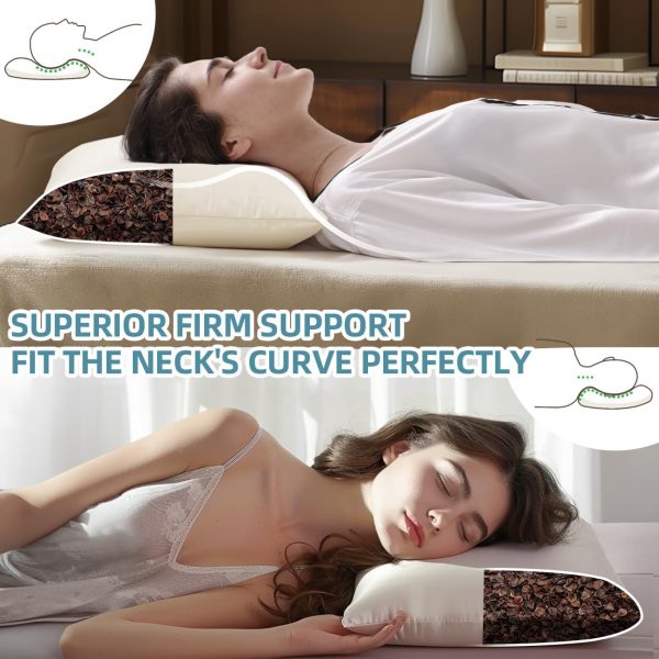 SUPERIOR FIRM SUPPORT, SAY GOODBYE TO NECK PAIN: The buckwheat hulls in buckwheat pillow flow like water and perfectly fit the curve of your neck, providing you with the most comfortable support. Your head, neck and body will be in a right line. Say goodbye to neck and shoulder pain.