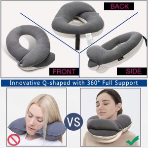 ✦360° Chin/Neck/Head Support✦ Adult size for neck size 12.5″ and above. Small size for neck size up to 12.5″. The patented ergonomic travel pillow, with unique triple support, prevents the head from falling forward. The Q-shaped design provides 360 degrees of good support to the head, neck, and chin, relieving neck pain when sitting in an airplane, car, office, and home. You can turn the pillow 90 degrees to get elevated side comfort.