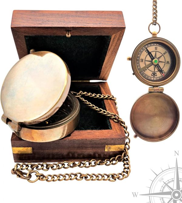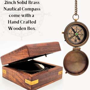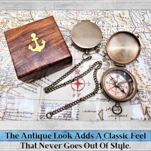 🧭 The Vintage Nautical Compass is Made of Premium Grade Brass and Comes with a Handmade Wooden Gift Case.