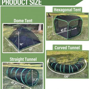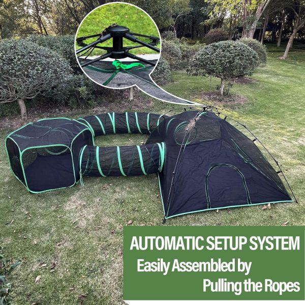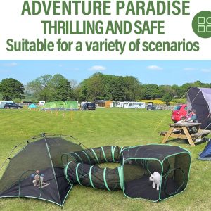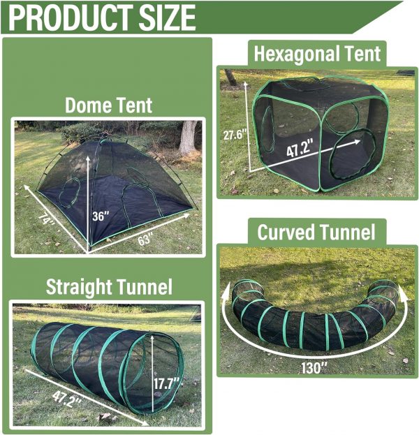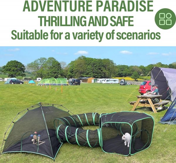Cat Tents for Outside, Outdoor Green Cat Enclosures for Indoor Cat, Foldable Cat Tent with Tunnels for Outside, Portable Catio 4-in-1 Pet Playpen Including 2 Tents and 2 Tunnels