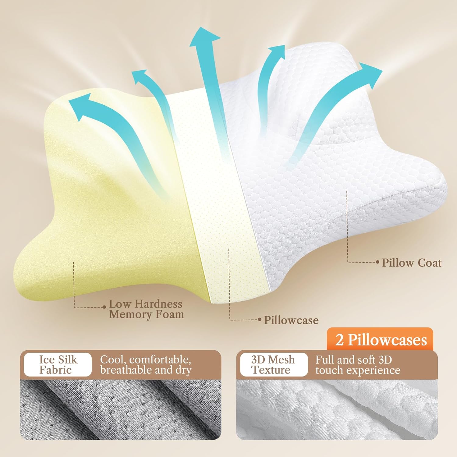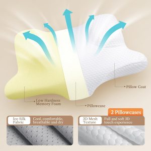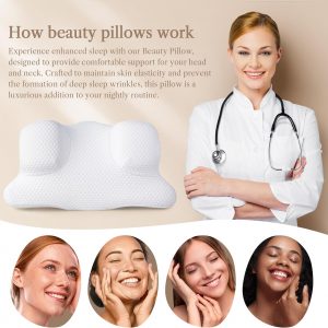 REDUCES MORNING SWELLING AND SLEEP WRINKLES: The Beauty Sleep Pillow’s unique design boasts a varying height between its upper head support and neck support, promoting lymph flow to prevent morning swelling and under-eye bags. Not only that, its shape also helps prevent sleep wrinkles.