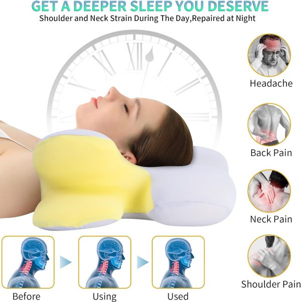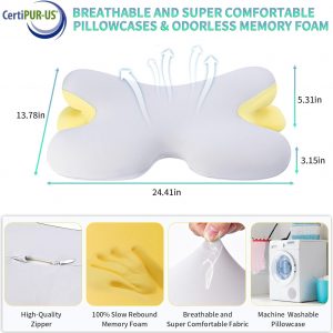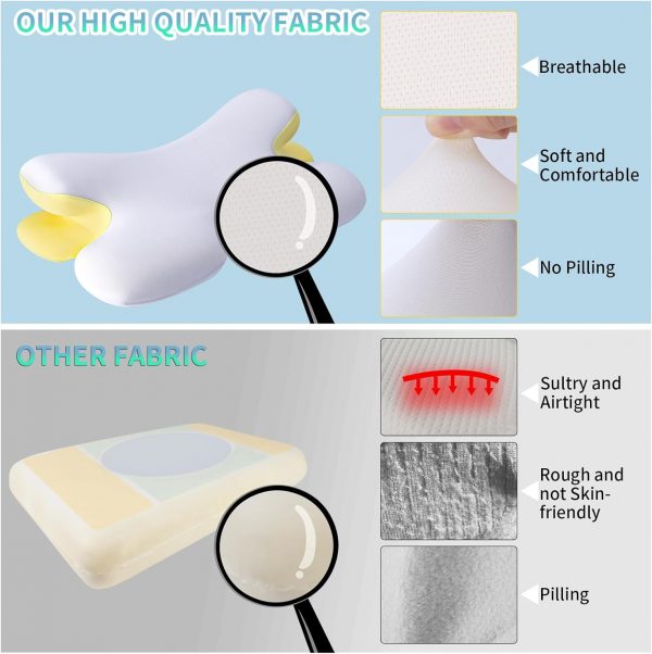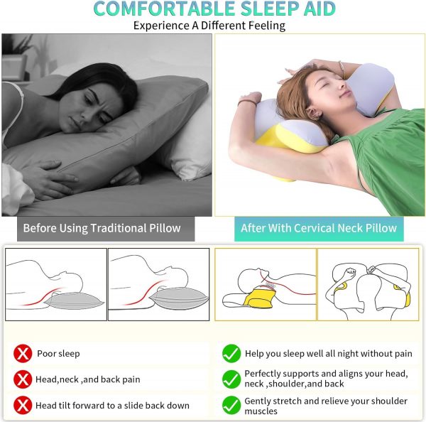 【Natural Ice Silk Pillowcase】Cervical neck pillow is made of slow rebound memory foam, which is anti-pilling, smooth and soft fabric touch, and has passed CertiPUR-US certification, which guarantees the safety and quality of the product, and the full ice silk pillow cover keeps you cool and comfortable sleep environment, is your ideal choice