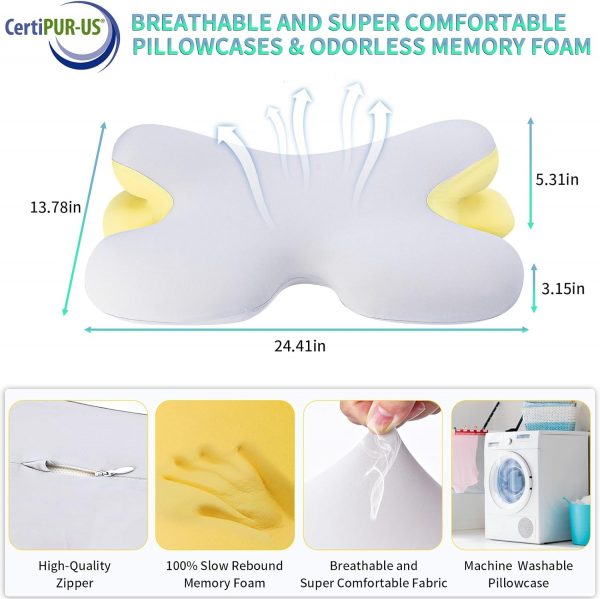 【Removable Breathable Pillow Cover】Memory Foam Pillow has excellent moisture absorption and breathability, removable and machine washable, maintain consistent firmness all year round, leaving no creasing
