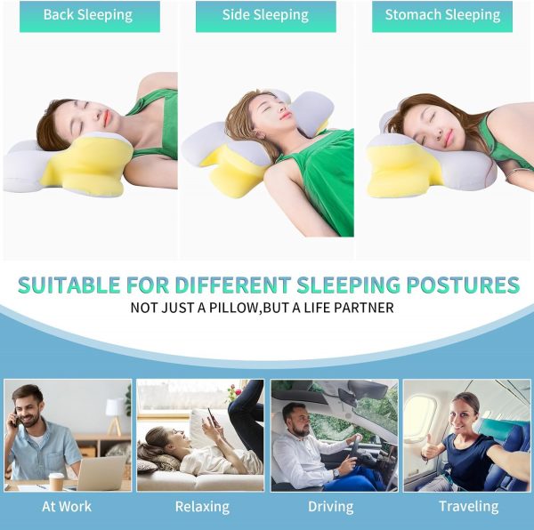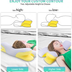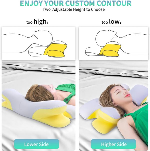 【π-Shaped Design & Two Height】The unique π-shaped neck pillow perfectly supports and aligns your head, neck and shoulders, effectively adjusts and corrects your sleeping posture, allowing you to fall asleep quickly and deeply. The height design on both sides meets the needs of different people and can be easily customized Your personalized sleep style for a good night’s sleep