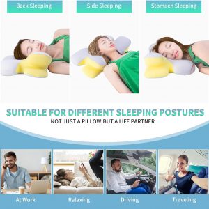 【Ergonomic Design】Ergonomic orthopedic pillow for neck is ergonomically designed with two grooves on the side, which is very suitable for prone sleepers to place their arms. It can effectively release the pressure on the cervical spine and neck and relieve the pain in the shoulders and neck. This memory foam pillow can Help you relieve pain and enjoy the most comfortable sleep experience