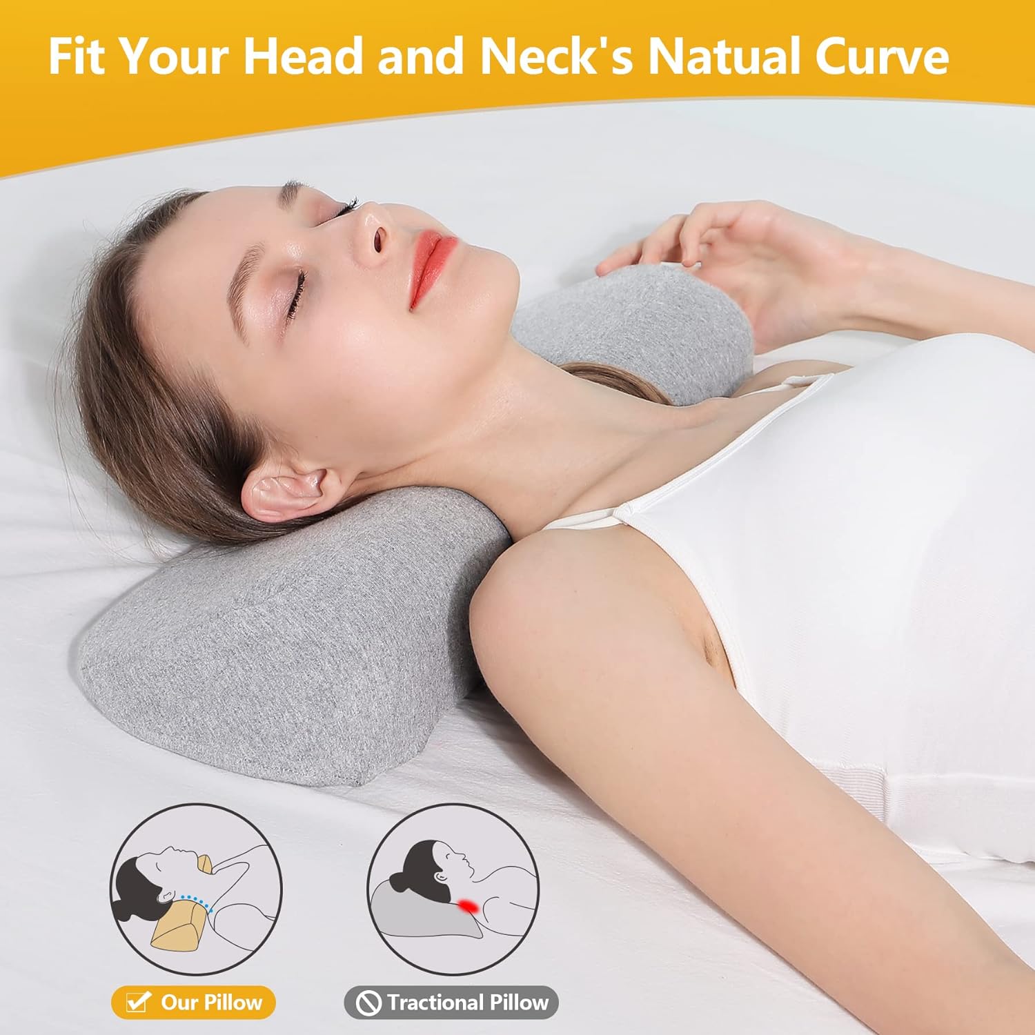 【 2 in 1 Cervical Neck Pillow 】 This pillow is different from traditional pillows, it combines a Neck roll Pillow and a Cervical Pillow in One. The unique concave shape will fit the neck and will fill the gap with the neck and gently stretch the neck. Neck sleeping pillow provides neck support and relief for all sleepers and neck pain. Ideal for cervical spine stretched, neck pain relief.