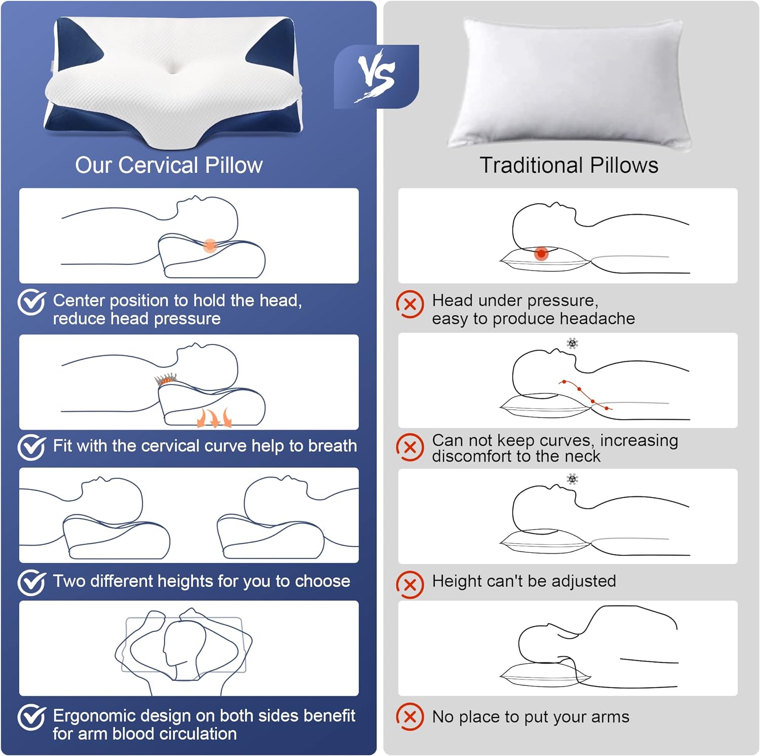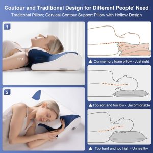 【Give You High Qulity Sleep】The neck support pillows makes you feeling rested and high quality sleep at night. Well designed to support neck and shoulder by following the natural curve of your body, so as to keep air passages optimal for less snoring and more restful sleep. The cutouts on the side give your top arm a place to rest and keep it at an angle so your shoulder is not hunching over in front of you. So you will wake up relaxed without any neck and shoulder pain.