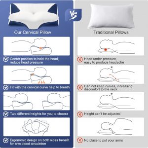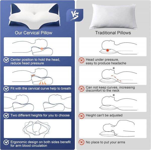 【Reduce Neck & Shoulder Pain】Pillow for neck and shoulder pain. Contour ergonomic design perfectly supports and aligns your head, neck, shoulder, and back. The slope keeps your head from rolling out of a stable position. Bringing a reduction of stress in the cervical vertebra and spine, improving sleep and relieving neck and shoulder pain. Our shoulder pillow have 2 different heights on both sides, so you can choose the right one which is more suitable for your sleeping posture.